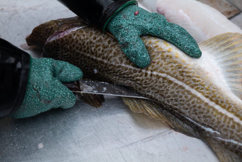 – Egentlig er ikke fiskemat det første jeg tenker på når jeg kommer hjem etter en lang dag på havet, men jeg skal innrømme at dette var godt, sier Simon og forsyner seg med nok et stykke blodfersk torsk.